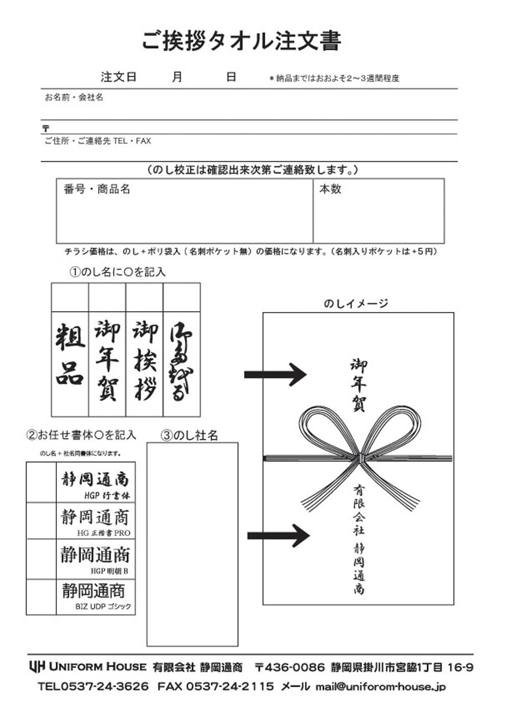 UNIFORM HOUSE (有)静岡通商TEL0537-24-3626FAX0537-24-2115