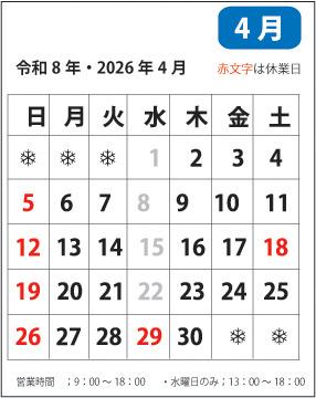 2月・3月・4月の営業時間・休業日・特別休暇のご案内