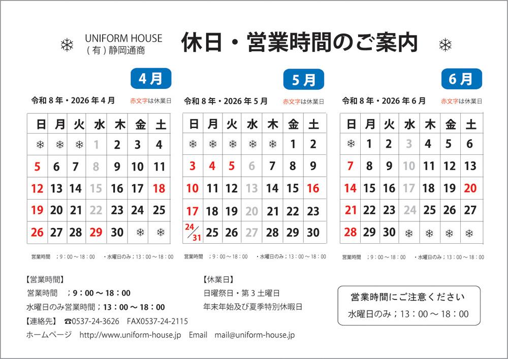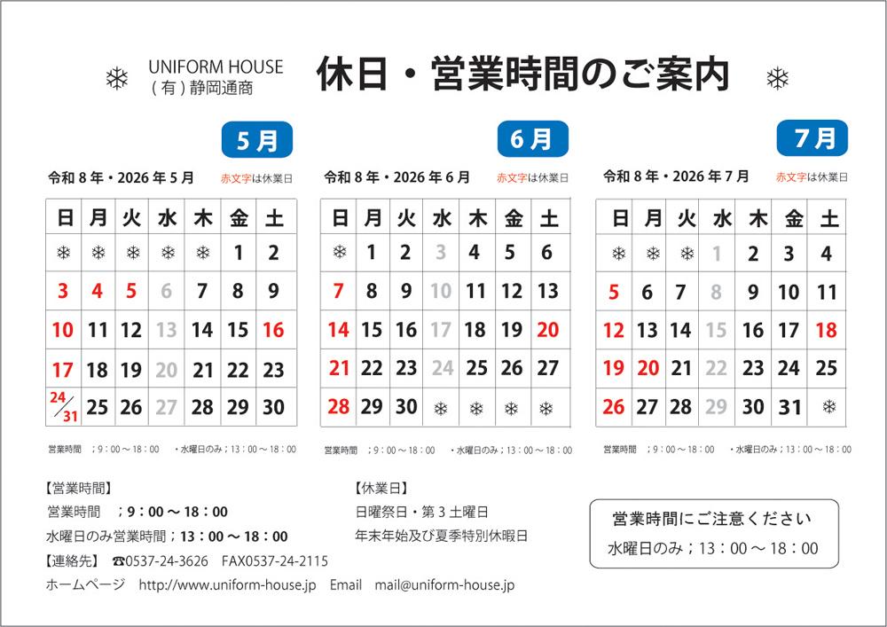 UNIFORM HOUSE (有)静岡通商TEL0537-24-3626FAX0537-24-2115 |