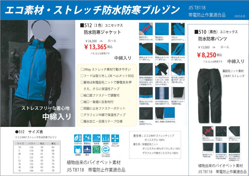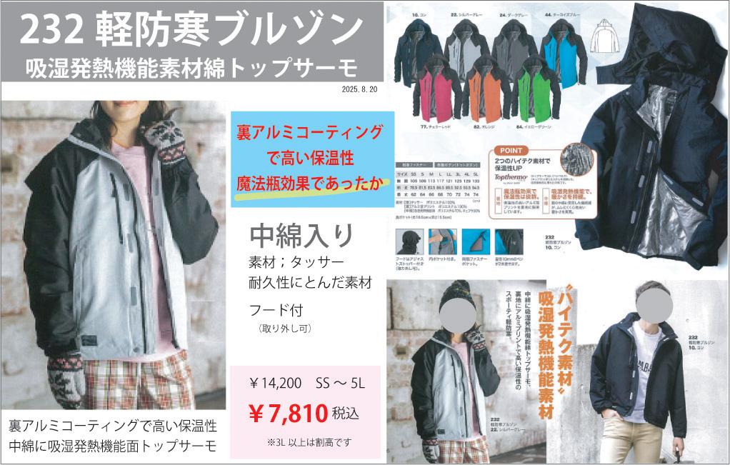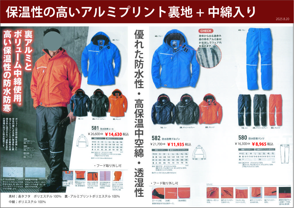 ~ 中綿入り防水防寒ブルゾン&コート 保温力 2025.8.20 ~